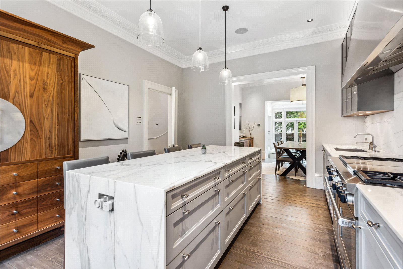 This simply stunning house has been finished to the highest standard throughout; rarely seen on the lettings market. Having been recently refurbished, the house comprises a bespoke kitchen/dining area on the ground floor leading to large patio garden, the ground floor benefits from a separate entrance and laundry room and offers a spacious guest bedroom with en suite bathroom and excellent built in storage. The first floor comprises a beautiful double reception room with feature fireplace and balcony plus beautiful bespoke cabinetry. Bedroom accommodation is split over the second floor and third floors offers a luxurious master suite plus two further double bedrooms and a family bathroom. Offered on a fully furnished basis and air conditioned from ground floor up, the house further benefits from sonos sound and intelligent lighting throughout.